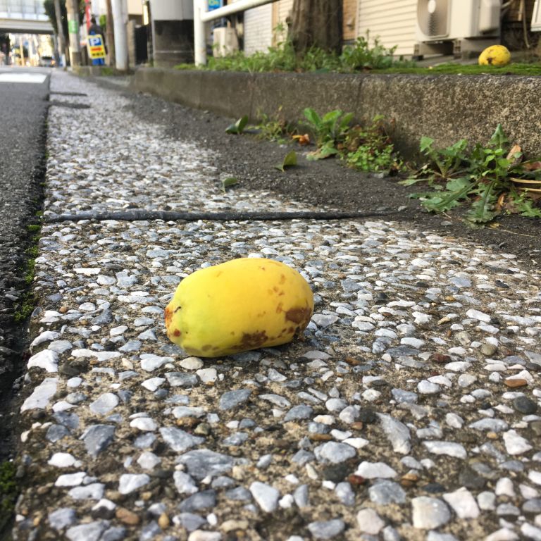 台風のあとはいろんな実がおちている。