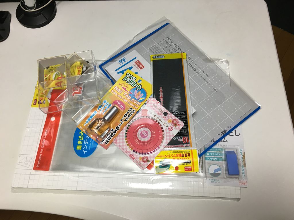 収める箱は当初この透明な4つに仕切られた箱(左上 ダイソー)を考えていたのだがその後セリアでよりイメージに近い箱をみつけたのでそちらを使う事にしました。