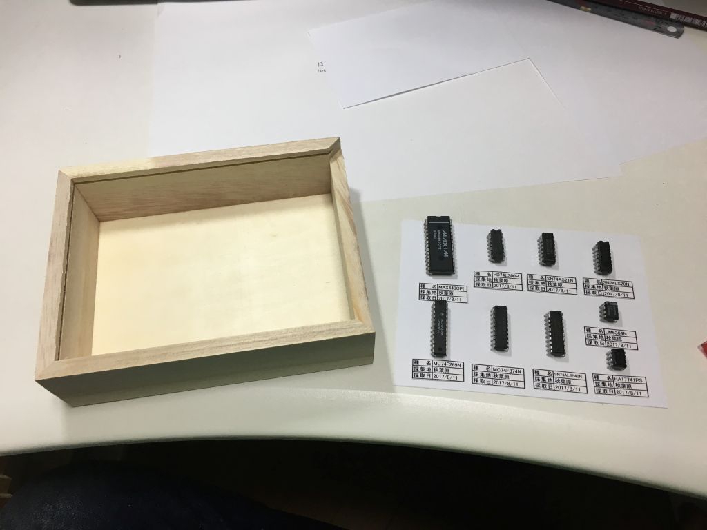 紙を箱の中のサイズに切ってICを仮置きしてみる。