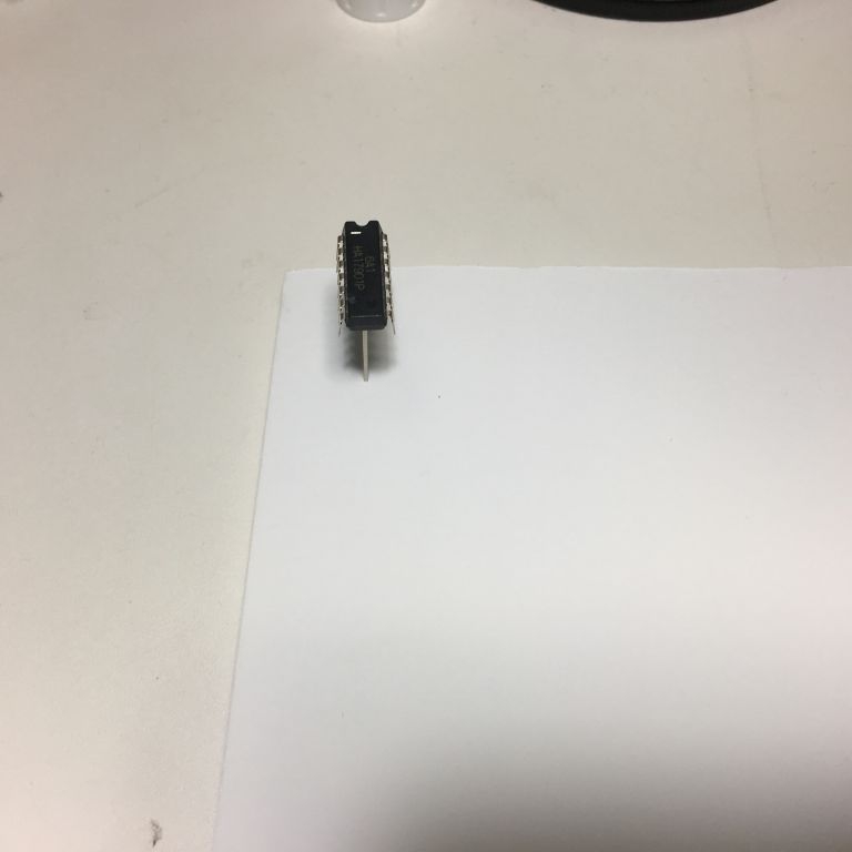 ICの後ろに虫ピンを接着する。虫ピンは100円ショップではなく東急ハンズにて購入(有隣堂にはなかった)