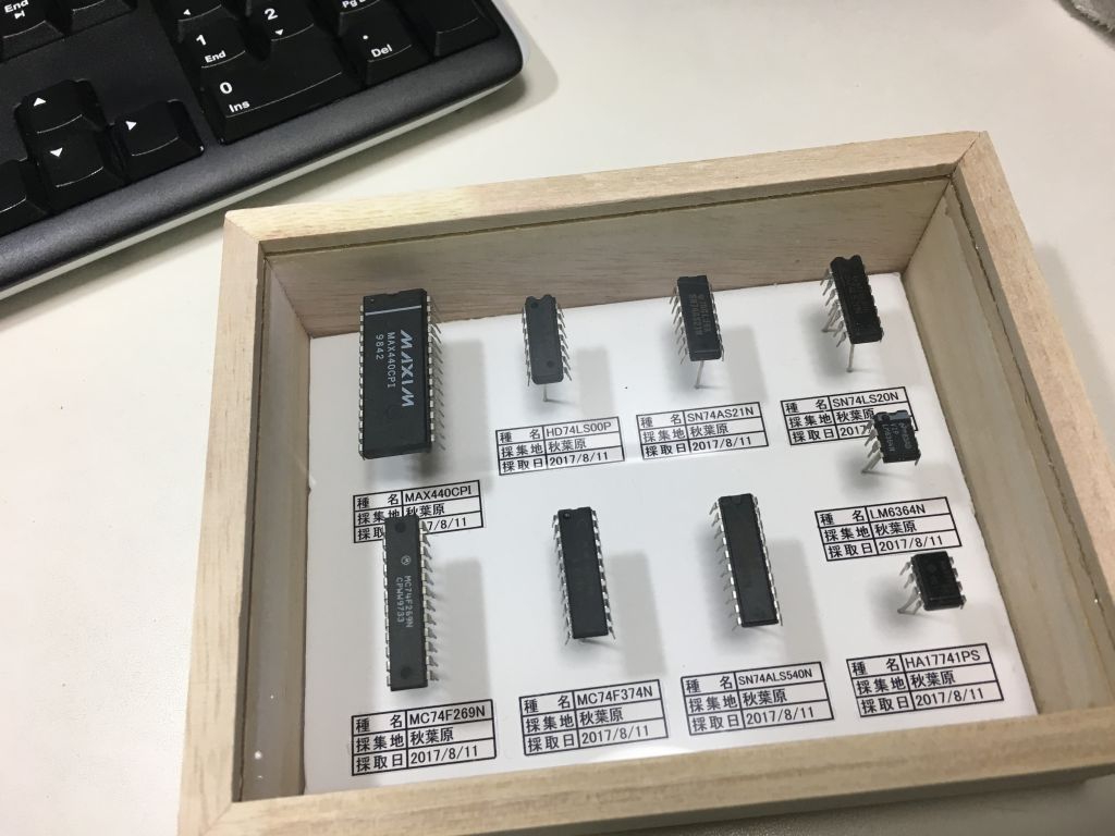 昆虫採集の標本箱にみえるかな? タイトルは「IC採集」とします。